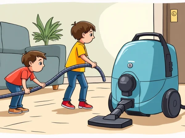 You can also add other characters. Maybe there’s a small pet watching the vacuum cleaner, or a child happily playing nearby. This adds more life and interest to your cartoon. The interaction between characters makes the scene more engaging.